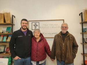Fair Haven Baptist, Shelbyville, opened a warming shelter for cold seasons three years ago. The efforts are spearheaded by John and Joan Hall, pictured with pastor Peter Allen, left. — Photo by Zoë Watkins